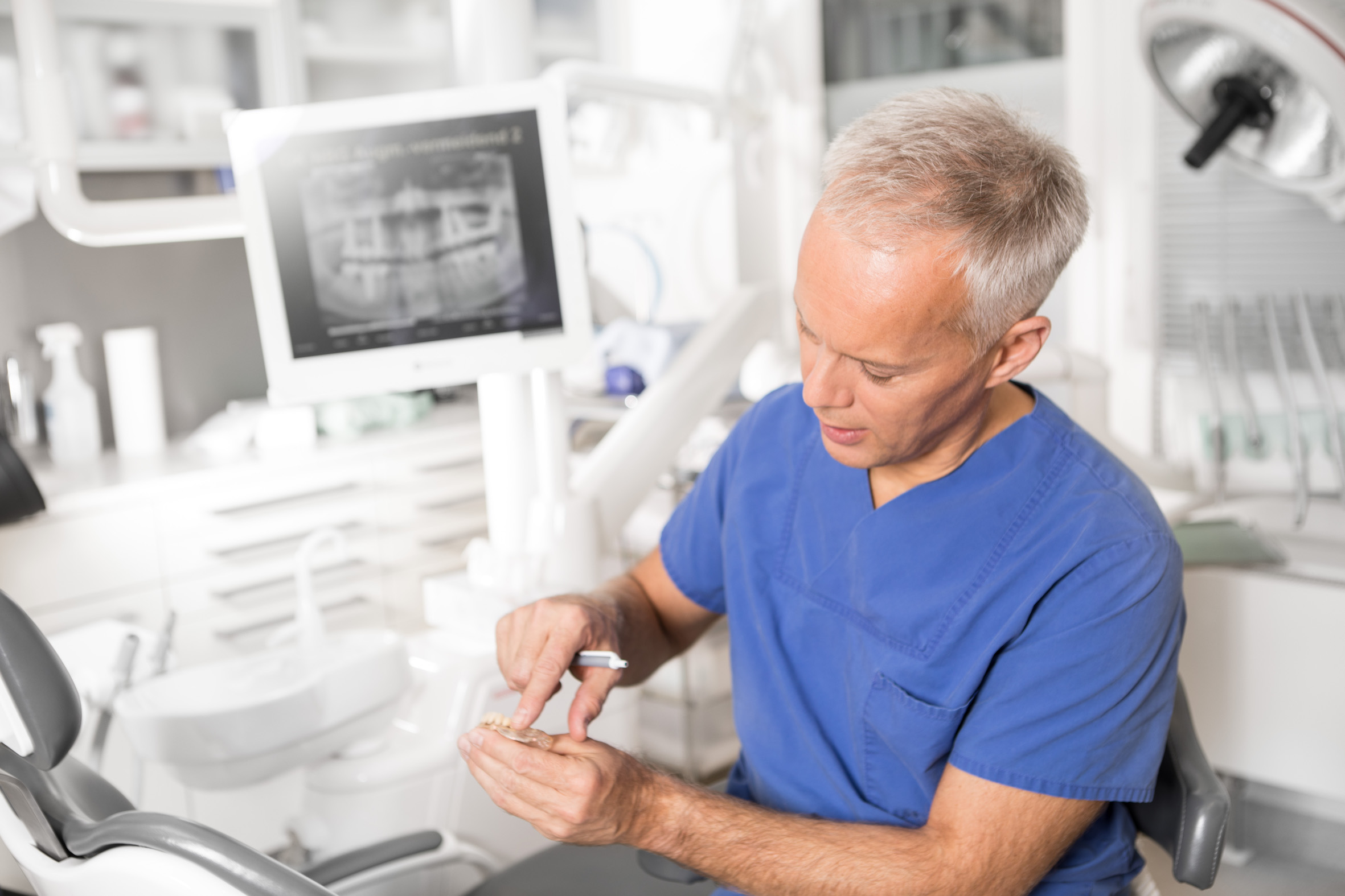 Beim Unterkiefer kann man nicht voraussetzen, dass eine Totalprothese „halten“ wird; besonders dann nicht, wenn sich der Kieferknochen bei langer Zahnlosigkeit oder durch Entzündungen (Parodontitis) zurückgebildet hat.